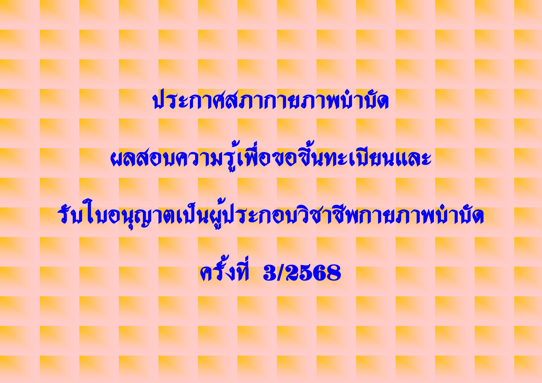ประกาศ! ผลสอบความรู้เพื่อขอขึ้นทะเบียนและรับใบอนุญาตเป็นผู้ประกอบวิชาชีพกายภาพบำบัด ครั้งที่ 3/2568